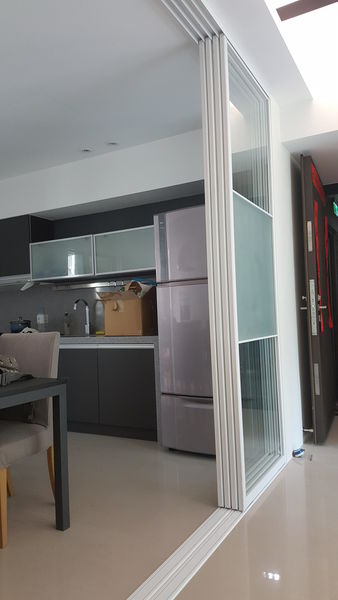 開放式廚房 白色細鋁框拉門 竹北 張先生的新家是白色極簡風格 有個很棒的開放式廚房及餐廳設計 但還是希望能有個隔間拉門可以擋油煙 而又須保持空間開闊及光線穿透感 討論後採細鋁框 橫拉門 上下軌道施作方式 搭配新家的白色裝潢 選擇白色的框色 玻璃分為上下透明玻璃 中間噴砂玻璃 一切討論就定案後 特工進場啦~ 以下為施工安裝照片參考喔~ 以上是白色細鋁框拉門施工案例 提供給有需要的朋友們參考喔~分享此文: 分享到 X(在新視窗中開啟) X 分享到 Facebook(在新視窗中開啟) Facebook 喜歡 正在載入... 相關 Posted In:鋁框拉門
