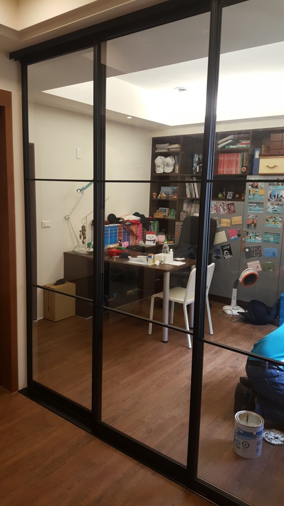 在已經居住空間裡,最大挑戰就是如何打造出隔間。傳統都是以磚牆或木作裝潢來區隔不同的起居空間,但是厚重的磚牆施工浩大且會大大降低室內採光度及空間感,木作裝潢施工過程粉塵太多,已住在裡面不易清理。為大家分享近期案例,以玻璃拉門來分隔空間!