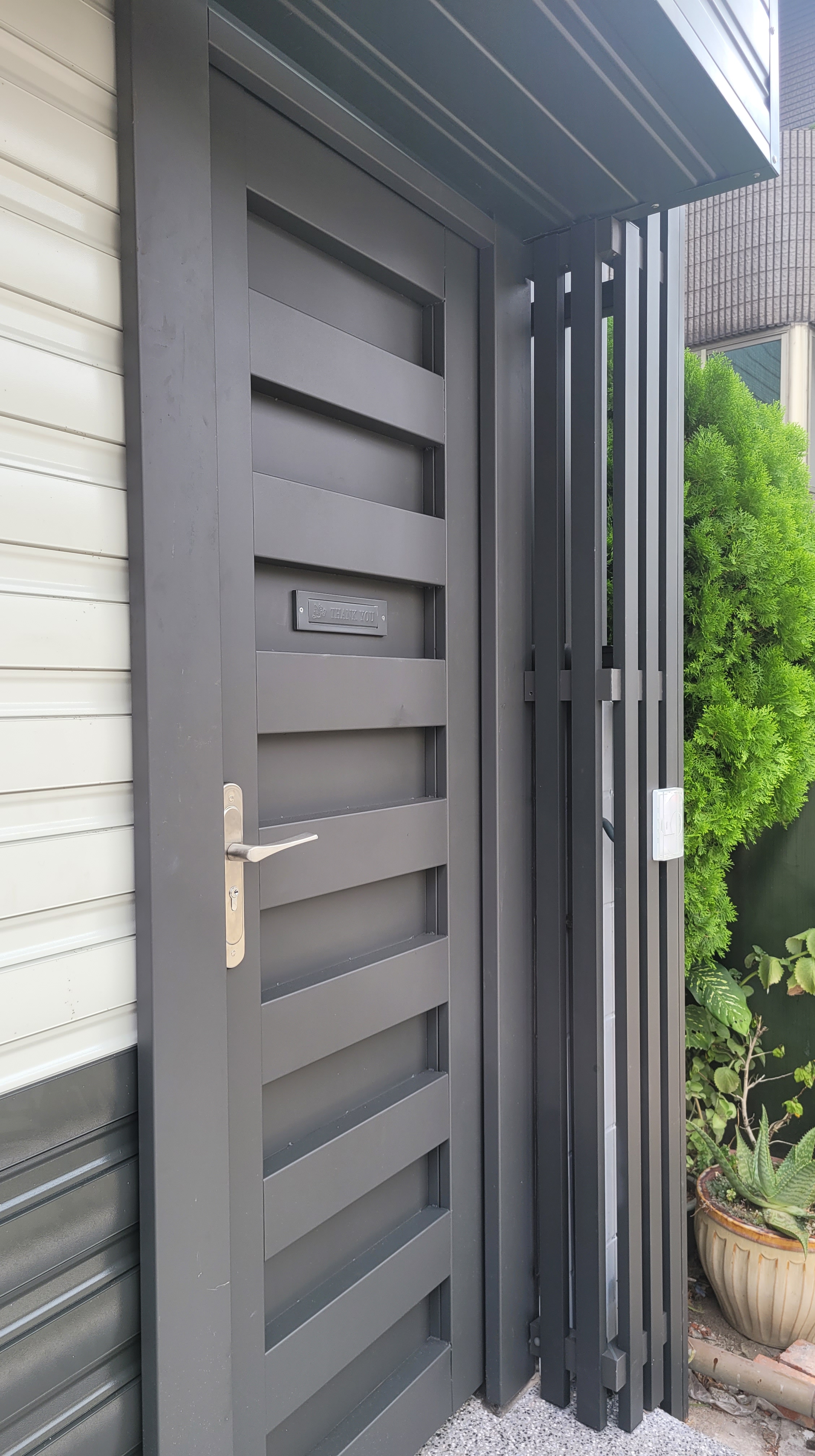 鐵件扶手 / 石頭漆 / 採光罩 / 格柵